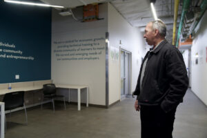 Dr. Kevin Kelley, CEO of Peaslee Tech, leads Omni staff on a tour in late January at the tech center where Ignite sessions will be organized; courtesy photo