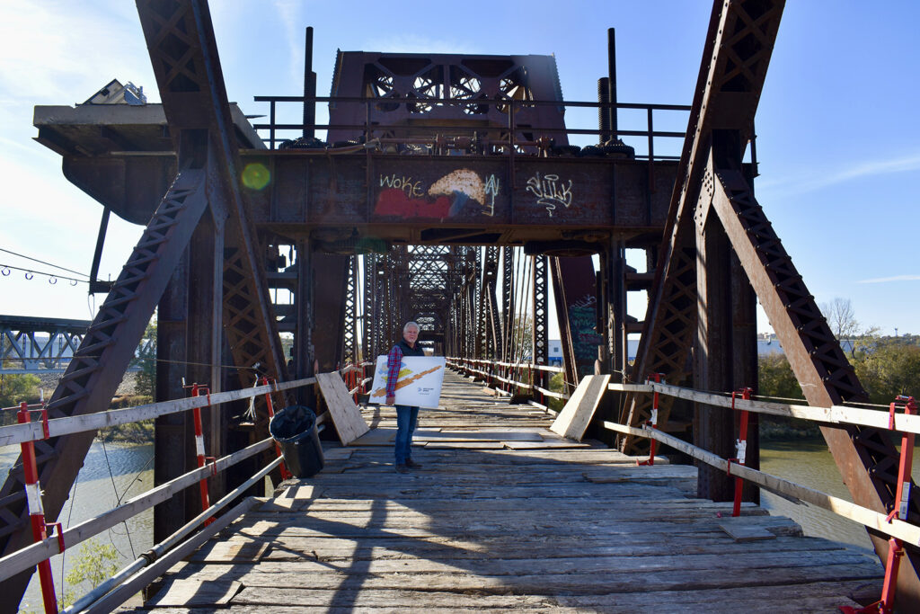 A bird’s-eye-view, looking down on the west portion of the Rock Island Bridge; courtesy photo
