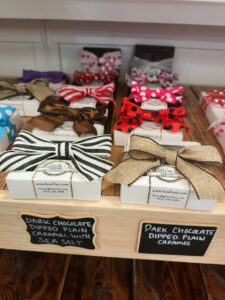 Packaged candies from Lorellie’s Handcrafted Caramels and Chocolates on the shelves at the Painted Tree Boutiques in Overland Park; photo by Joyce Smith