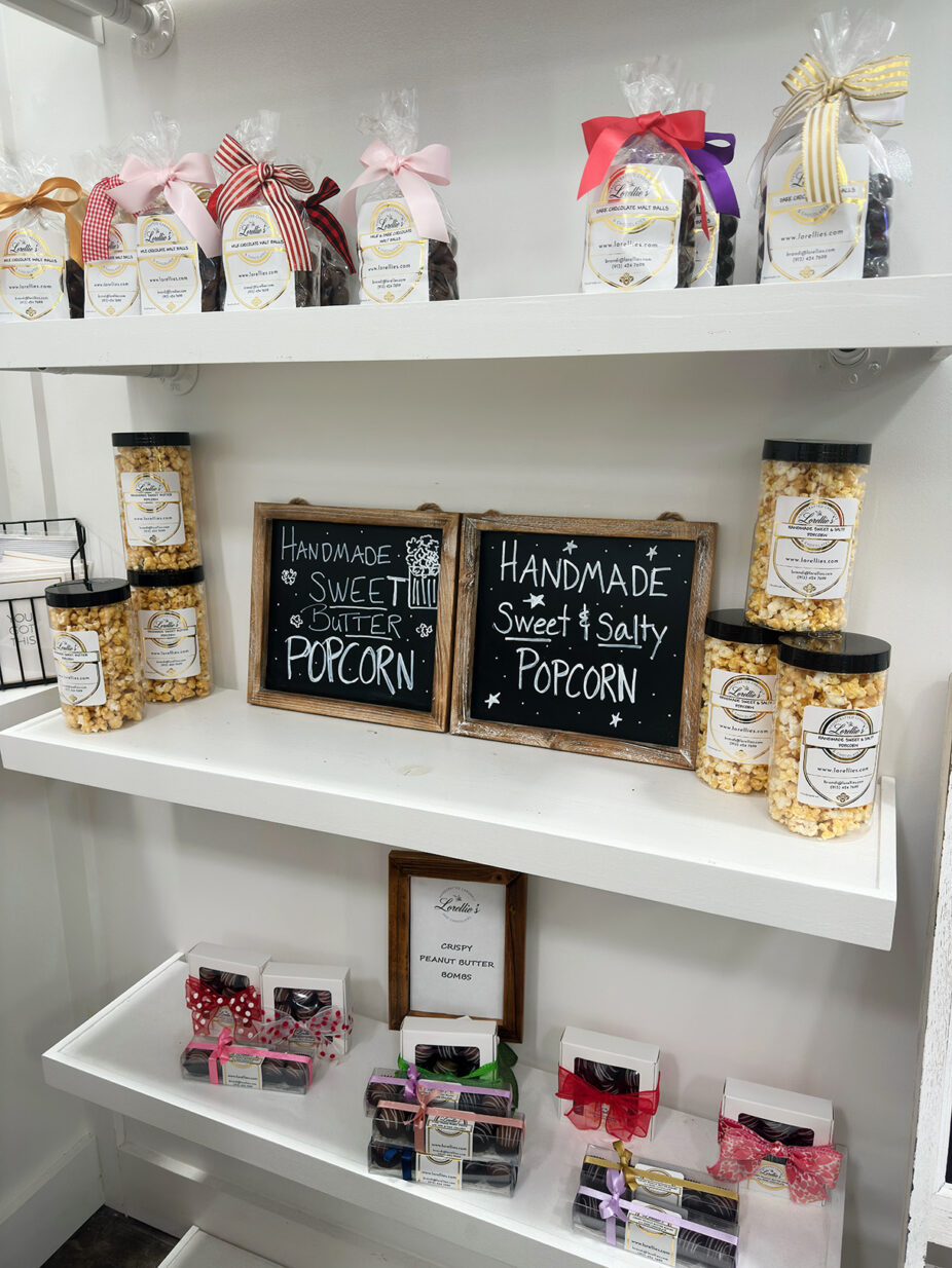 Confections from Lorellie’s Handcrafted Caramels and Chocolates on the shelves at the Painted Tree Boutiques in Overland Park; photo by Joyce Smith
