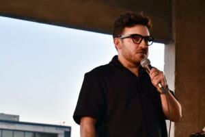 Luis Padilla, founder of Folklore and Fresco Marketing, speaks during the 2025 Folklore event atop Corrigan Station in Kansas City’s Crossroads; photo by Nikki Overfelt Chifalu, Startland News