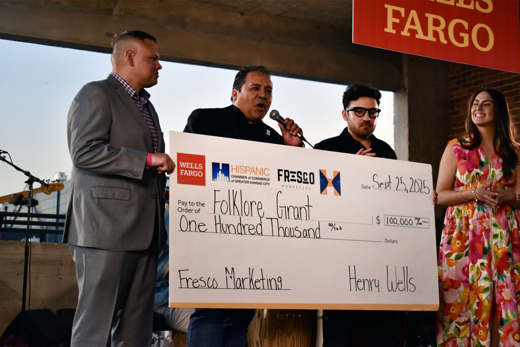 For the fourth straight year, Wells Fargo invested $100,000 into Folklore’s grants initiative, which awards $10,000 to 10 Latino businesses in Kansas City. Funds were accepted at the event by Padilla’s Fresco Marketing and the Hispanic Chamber of Commerce of Greater Kansas City.
