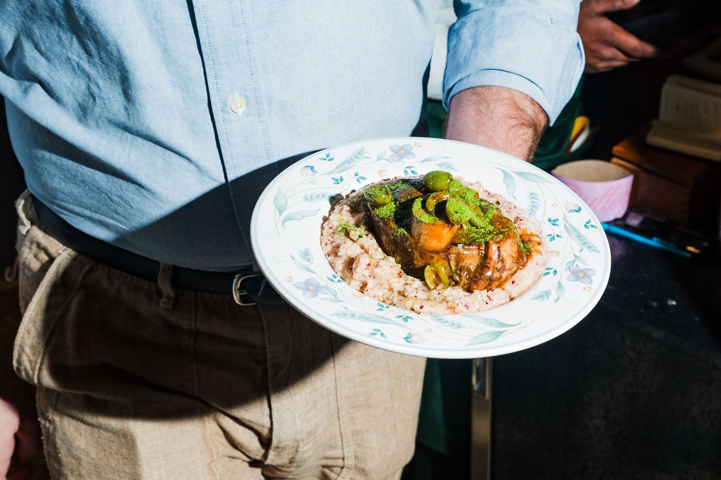 “I’m not interested in the horse-race version of politics — who’s the good guy, who’s the bad guy — because I’ve seen both parties bomb the shit out of innocent children in the Middle East,” said Hutchins as we took delivery of a cooling tomato-watermelon salad dressed in a sophisticated, non-D.C. way with a chopping of pickled watermelon rinds. When I asked whether an avowed Bay Area lefty like chef Waters would be dismayed to find one of her disciples spreading the gospel of local eating among a new generation of anti-immigration MAGA true believers, Hutchins furrowed his brow in contemplation for a minute or two. “Maybe, but if you do something well in a place like Washington, you should hope that the various powers that be will find their way to you,” he said. “The political compass is changing right now, and if you can steer both sides of the aisle toward a new way of eating, and possibly see some actual change, I’m willing to take a risk on that.”
